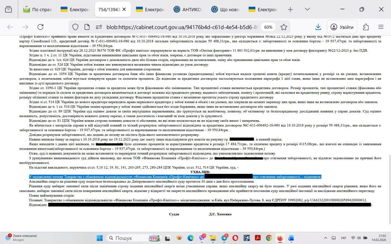 7 тисяч і пропроційно зменшені судові витрати - то, звісно, краще ніж 25 тисяч і повні судові витрати (30+), але вирахування судом комісії в межах строку кредитування - це щось новеньке.Вже є звичним, що справи з ТОВ ФК Гелексі при захисті мають закінчуватись стягнення "тіла" і дрібних відсотків. Зазвичай від суми вимог в 25 тисяч залишається до стягення 5 тисяч "тіла" і до двадцяти гривень процентів. А інші вимоги, як правило, це незаконна комісія (20 000 грн. орієнтовно). Я з принципу зазвичай завжди даю суду в цих справах і інший аргумент - нарахування процентів за межами строку кредитування. Тобто не 74,14 грн. процентів, а не лінуюсь розписувати, що 60 грн. процентів не законні. Ну так)). І в даній справі така аргументація по строку кредитування виявилась вирішальною. Бо суд в межах строку кредитування стягнув і комісію. ТОбто мали вийти на 5 тисяч і 14 гривень. А вийшли на 7 тисяч. з невеликим, ну і плюс судові. Ось і маємо в аналогічних справах з аналогічними умовами договорів і аналогічним захистом зовсім різні рішення. 7 тисяч і пропроційно зменшені судові витрати - то, звісно, краще ніж 25 тисяч і повні судові витрати (30+), але вирахування судом комісії в межах строку кредитування - це щось новеньке.0 Коментарів 0 Поділитися 348 Переглядів 0 Відгуків2